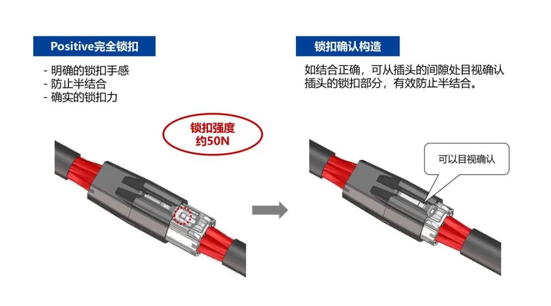 2. 清晰的锁扣感和目视可确认是否锁定