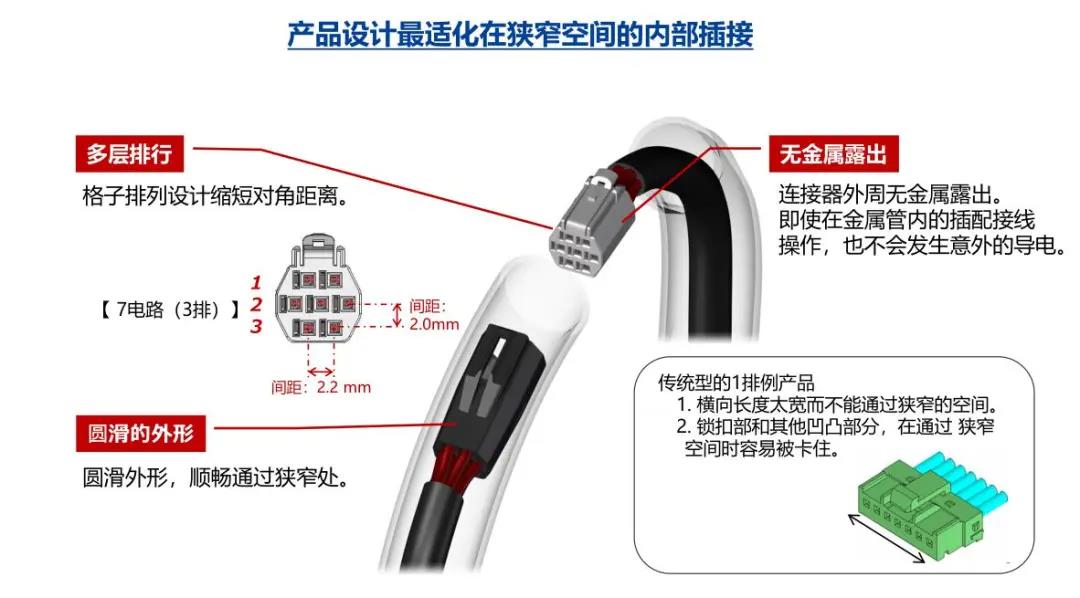 1. 纤细光滑的外形适合狭窄空间的布线